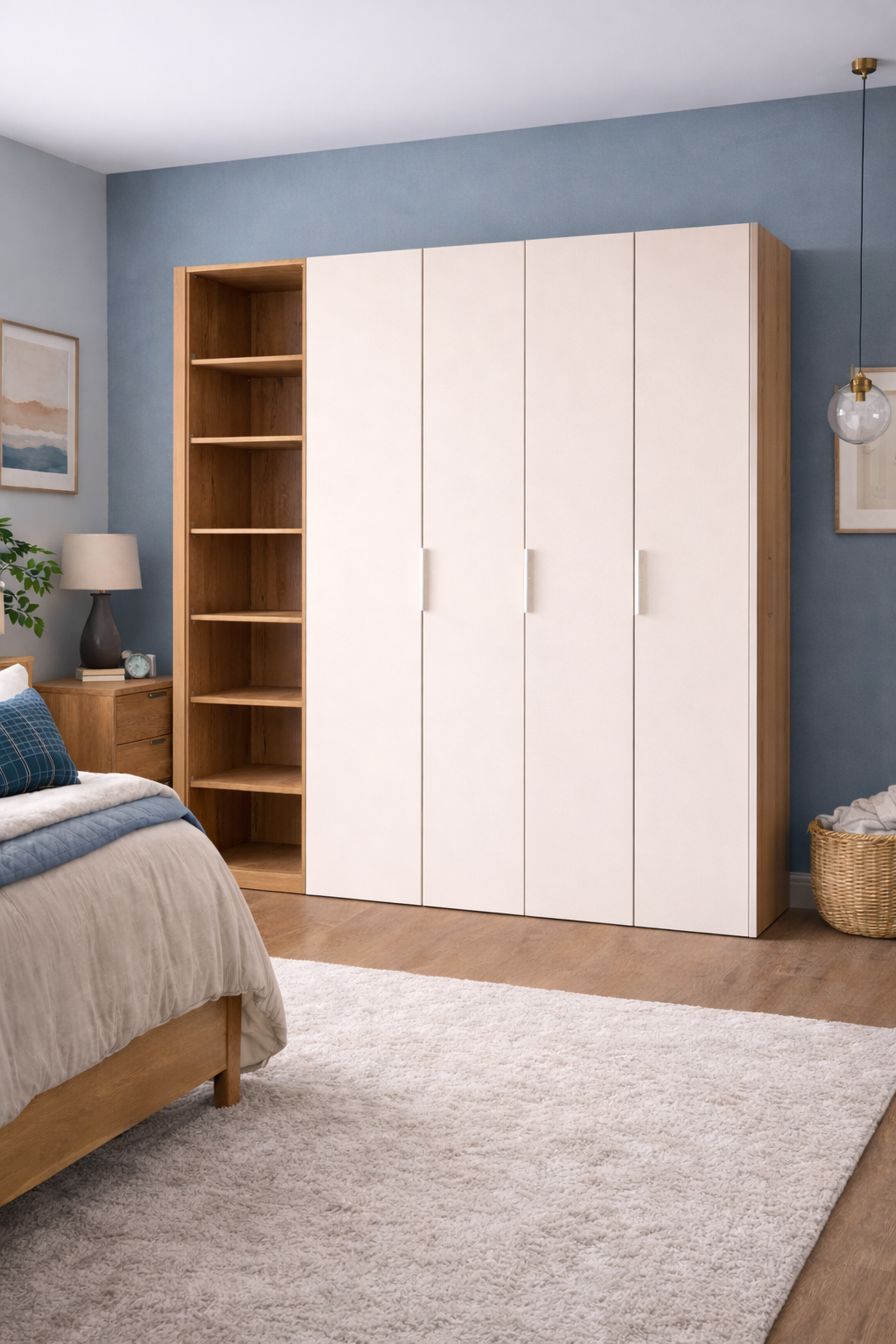 ארון פתיחה מודרני ממשפחת דגמי שרון במבצע. רוחב 200 ס״מ. 4 דלתות וכוורת מדפים. מגיע במגוון צבעים.